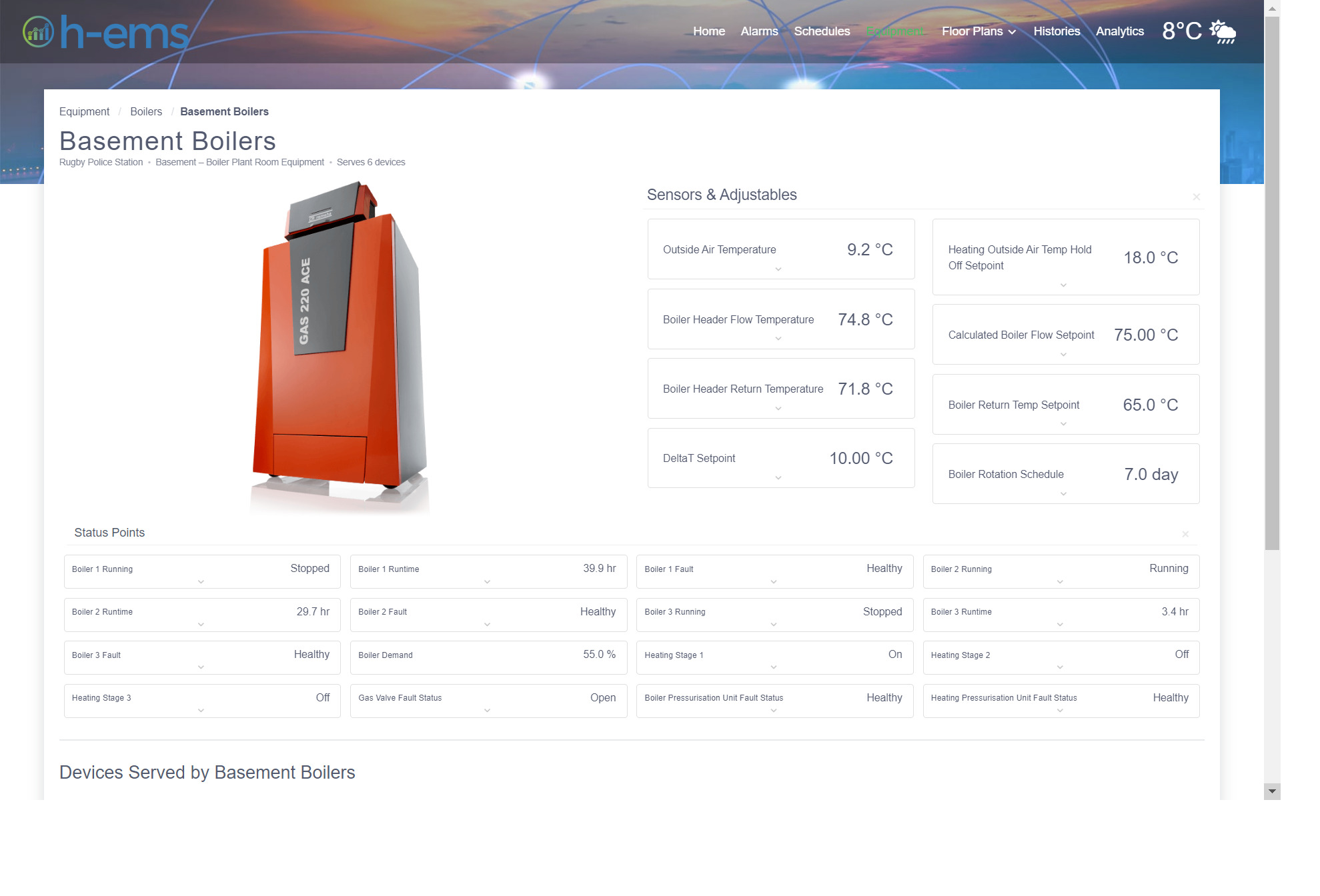Hills Energy Management Solutions took on an essential project at Rugby Police Station, initiated by AP Mitchell’s refurbishment of the boiler room. Our task was to install a new Tridium Niagara4 Building Management System to not only enhance the boiler room’s functionality but also ensure it worked seamlessly with the station’s existing HVAC systems, which included Chillers, AHUs, Chilled Beams, and AC Units. Further enhancing the project, we installed a comprehensive wireless LoRaWAN network throughout the building and deployed wireless IEQ Sensors to monitor lighting levels, humidity, CO2, occupancy, and temperature, aiming to uncover energy saving opportunities and to prioritise HVAC upgrades.