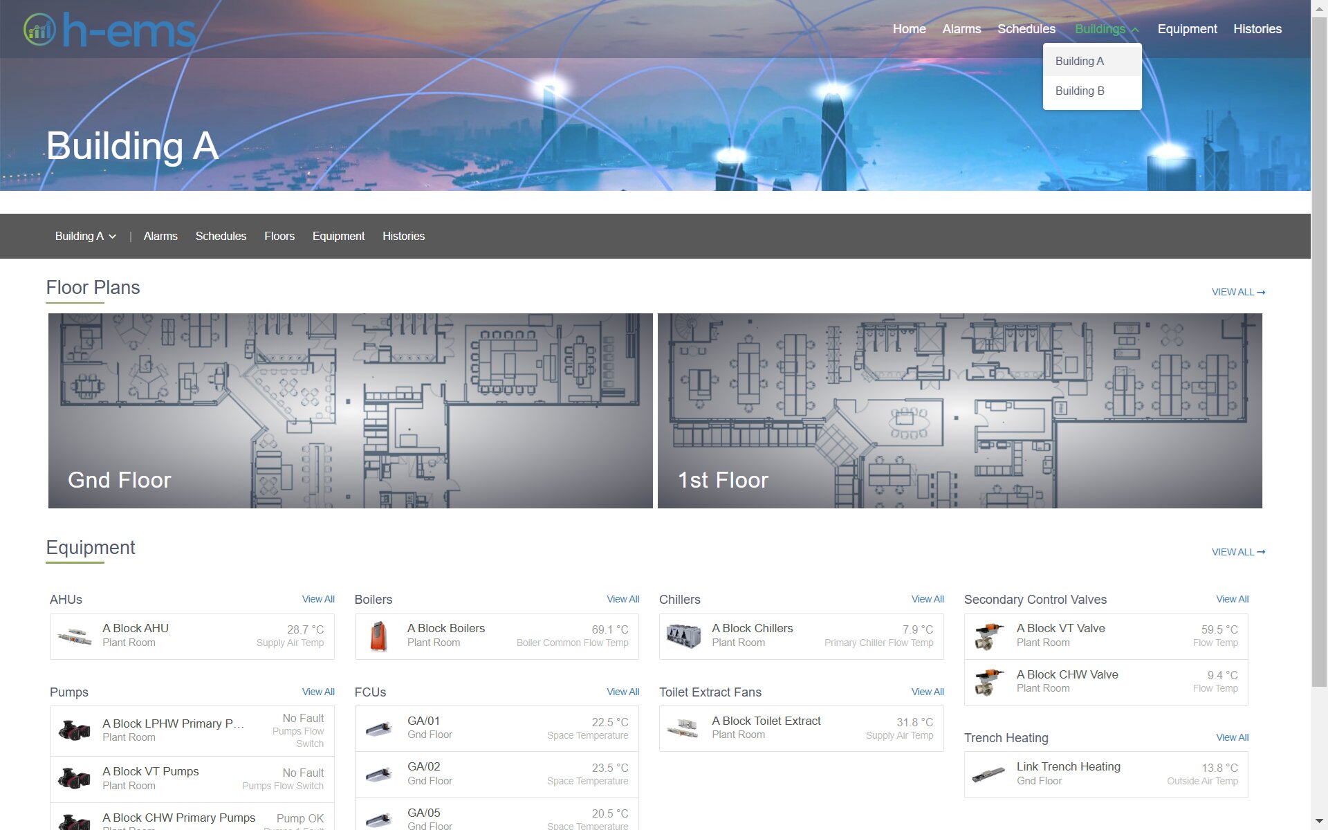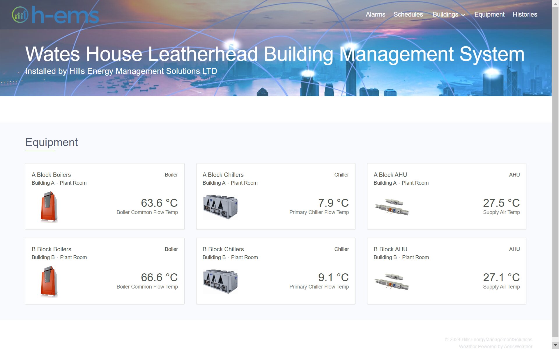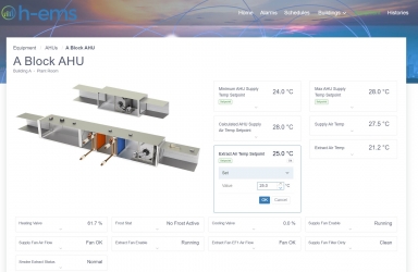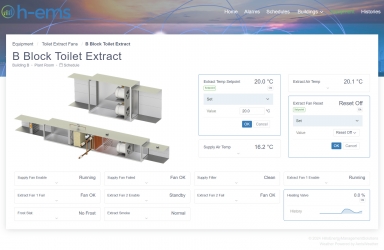 In total the site includes 4 Boilers, 2 Chiller, 2 Main Air Handling Units (AHU), 2 Toilet AHUs, Reception Trench Heating, and 100 fan coil units (FCUs). The challenge was to implement a modern, scalable solution while maintaining the existing infrastructure and minimizing disruptions to business operations.